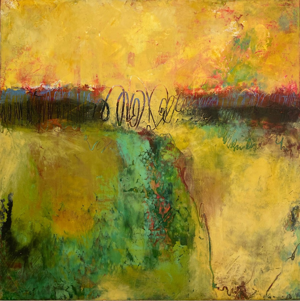 This “curing time” provides for more objectivity when assessing a piece of work that is in progress. This is a common practice among many creators. The distance from an intense period of work on a painting helps me decide whether it is truly resolved to my satisfaction. During this break I begin work on other pieces, become somewhat less emotionally involved with the original piece, and am able to view it more objectively. I keep these pieces in my peripheral view around my studio, and periodically assess them. In this way I have time to decide whether I find a piece intriguing enough for prolonged viewing. Minor, or even major, adjustments may follow this phase.
