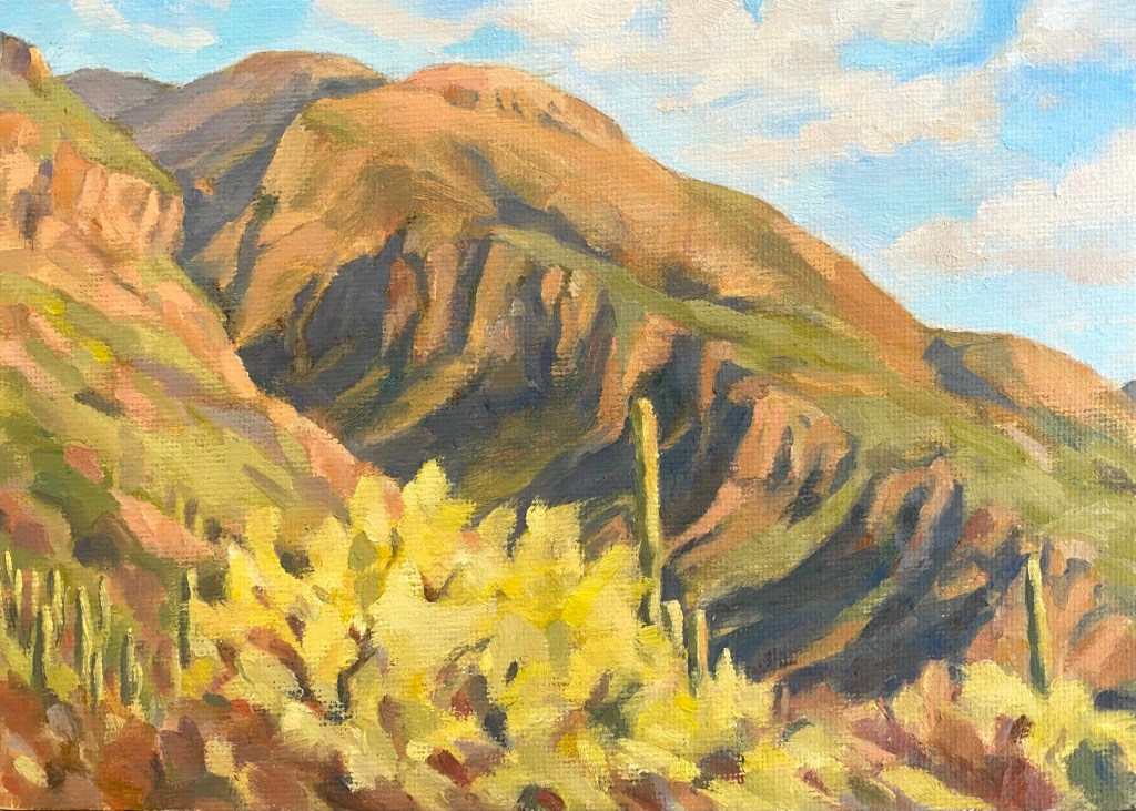 Oil Paintings “Pima Canyon Morning” 9 x 12″ “Dana Point Cove” 8 x 10″ “Victoria Falls, Zimbabwe” 14 x 11″ “Boulders, Oracle State Park, Arizona” 12 x 9″ “Afternoon; North of Malibu, California” 11 x 14″ “Storm Clouds at Ghost Ranch, NM” 20 x 20″ “Fish Market, Phnom Penh, Cambodia” 14 x 11″ “Boulder Creek, CO” 11 x 14″ “Cliffs at Ghost Ranch, NM” 9 x 12″ “Sunlight on Boulder Creek, CO” 11 x 14″ “Cloud Study” 5.5 x 5.5″ “Historic Ranch House, Oracle State Park, Arizona” 9 x 12″ “Sabino Canyon Sky” 8 x 10″ “Sabino Canyon Morning” 8 x 10″ “Palms, Agua Caliente Park” 8 x 10″ “Morning Light, Honeybee Vista Tucson” 8 x 10″ “Pond at Agua Caliente” 8 x 10″ “Storm Clouds at Camp Verde, AZ” 9 x 12″ “Trees at Ft. Lowell Park, Tucson” 9 x 12″ “Palo Verde Bloom, Catalina State Park” 11 x 14″ “Clouds Above the Tucson Mountains” 8 x 10″ “Casita Shadows” 8 x 10″ “Eucalyptus and Adobe” 10 x 8″ “Sabino, Morning Light” 5 x 7″ “Sonoran Sunrise” 10 x 8″ “Sarasota Trailhead” 6 x 9″ (oil on paper) “Catalina Mountains, Afternoon Light” 5 x 7″ “Catalina State Park, Shadows” 6 x 9″ (oil on paper) “Moon Setting Over Golden Gate Mountain, Sarasota Trail” 6 x 9″ (oil on paper) “Quiet Beach, Los Angeles” 9 x 6″ (oil on paper) “Gros Morne Park, Newfoundland” 8 x 10″ (Private Collection) “Vista from Empire Ranch, AZ” 5 x 7″ “Foggy Hills, CO” 8 x 10″ “Study, Red Rocks, Littleton, CO” 6 x 8″ Share this: Click to share on X (Opens in new window) X Click to share on Facebook (Opens in new window) Facebook Like Loading...